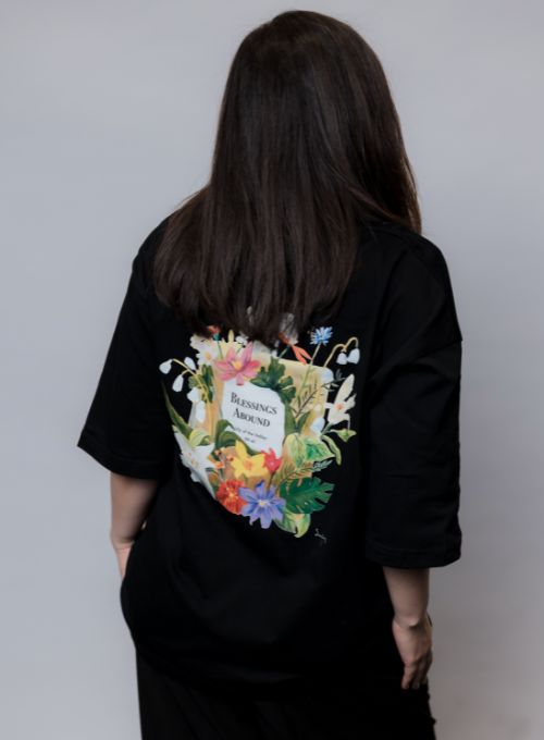 敬拜藝術設計款 T-shirt – Blessings Abound 祝福滿滿,大家最愛的 over-size 版型,透氣布料加上百搭的剪裁,藝術家限定款的人氣商品!